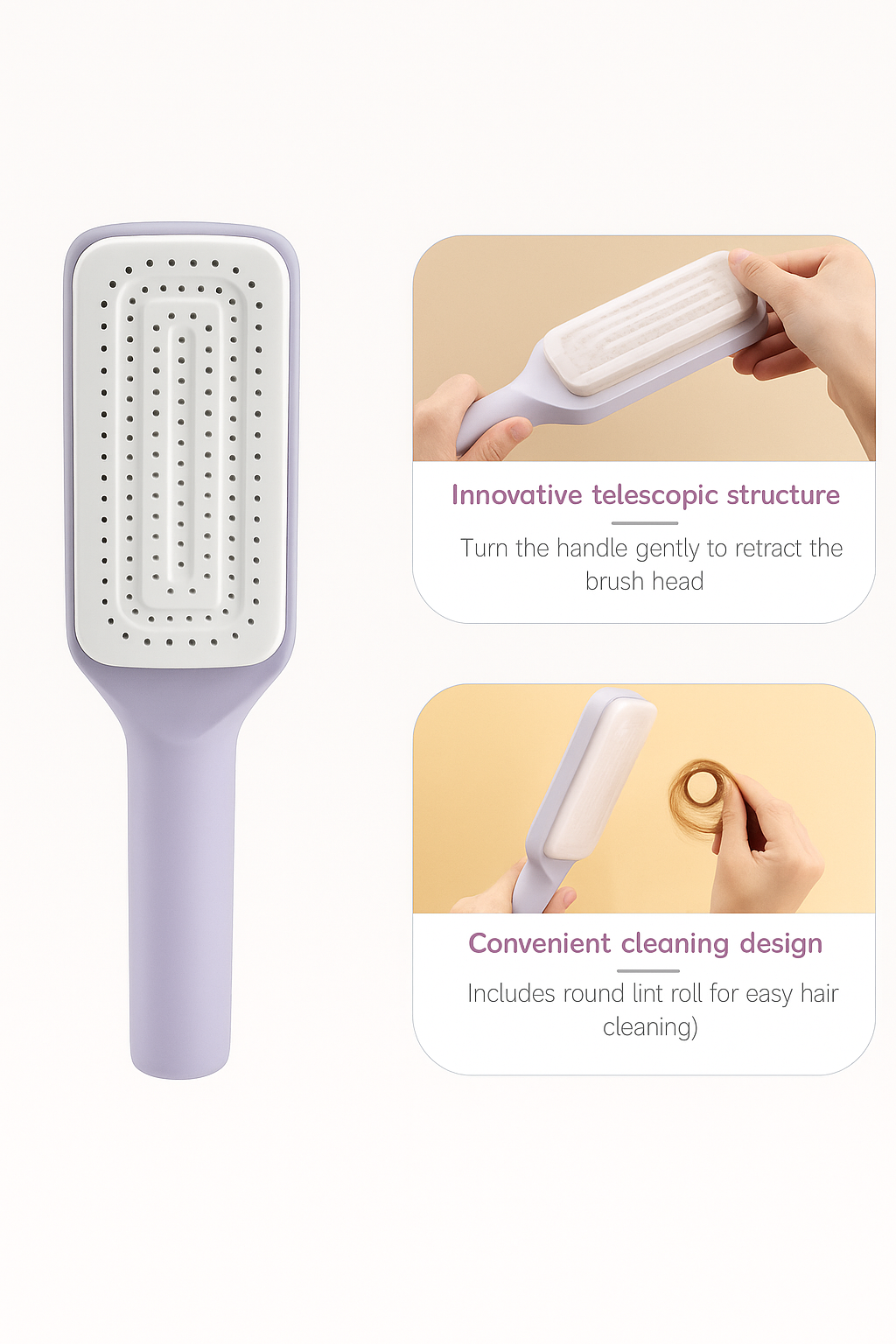 - Nooit meer vieze, volle borstels - haren en vuil haal je in 1 seconde uit.